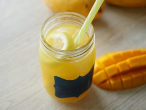 Bottle mein tayyar green tea,¼ Cup mango puree aur lemon juice dal ker ache tarhan mix ker lein.