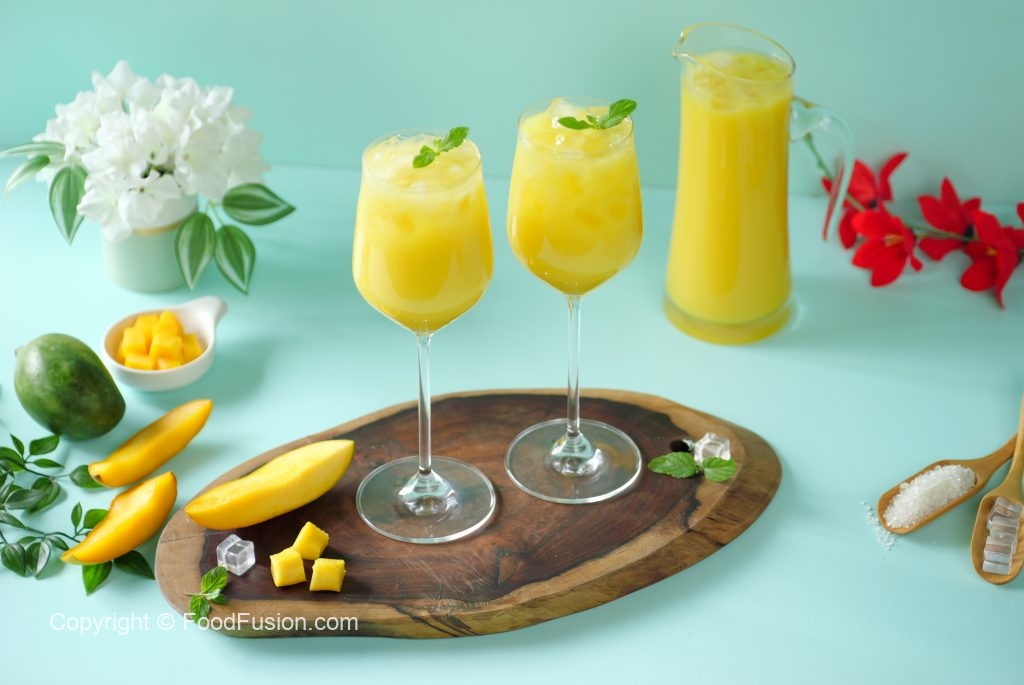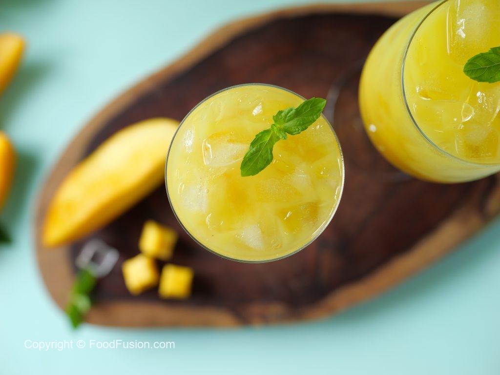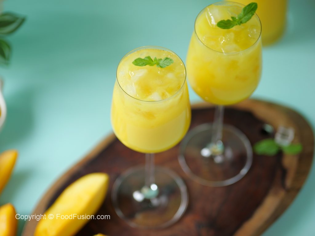 -Serving glass mein ice aur mango frooti dal dein aur podina sa garnish ker ka thanda serve karein!