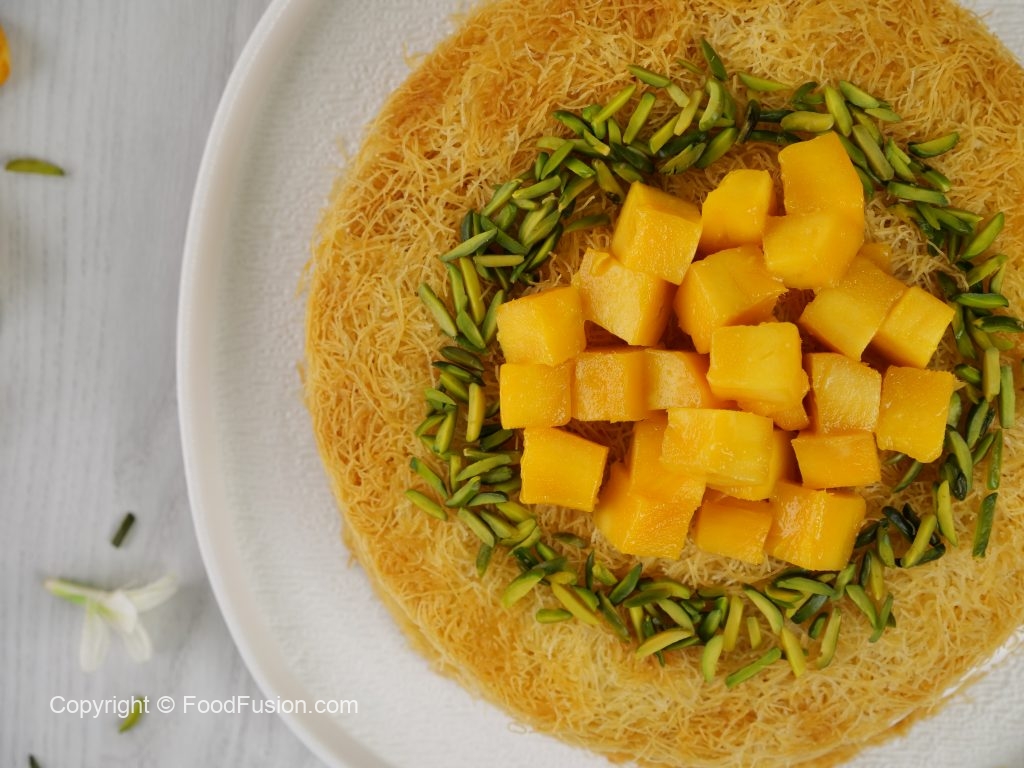 Treat yourself to a blissful dessert with Mango Kunafa: a crispy, golden pastry layered with juicy mango and topped with a sweet, aromatic syrup. A slice of perfection awaits! #happycookingtoyou #FoodFusion #digitalammi #pakistanicooking #NurpurButter #nurpurbutter