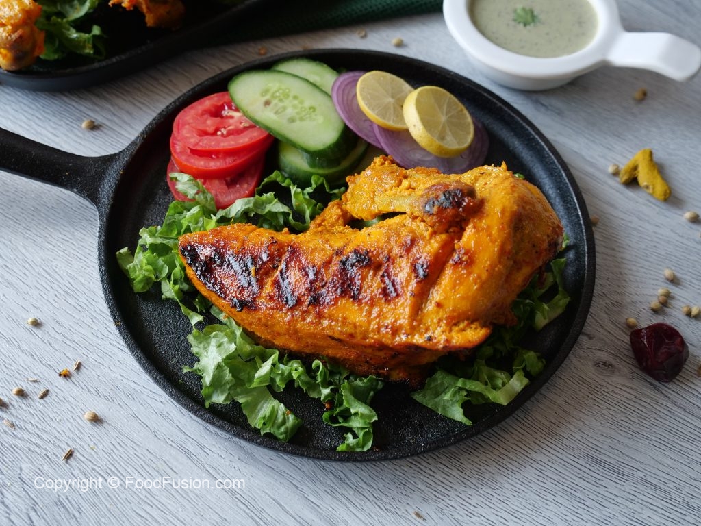 On a grill pan,add cooking oil & grill chicken on medium high flame from all sides until done and apply cooking oil in between.