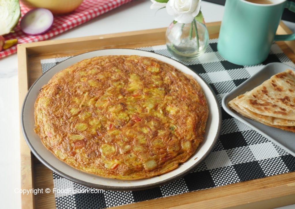 Frying pan mein cooking oil aur anday ka mixture dal ker evenly pheela mein aur dhak ker halki ancch per 5-6 minutes kliya paka lein phir flip karein aur 2-3 minutes kliya paka lein & serve karein!