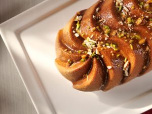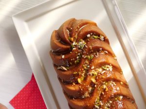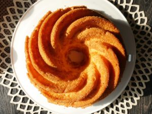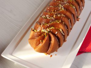 -Grease 13x5” ceramic bundt baking pan with butter & dust with all-purpose flour & set aside.