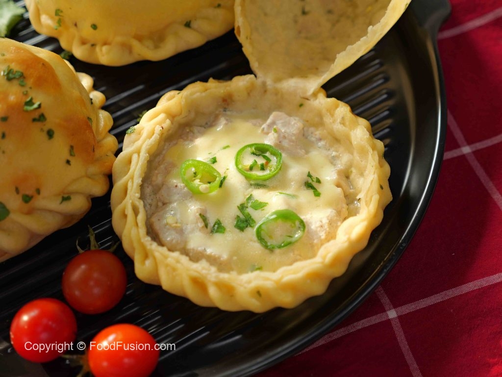 -Add prepared chicken filling in the center of the circle dough, add mix cheese, green chilli, fresh coriander.