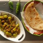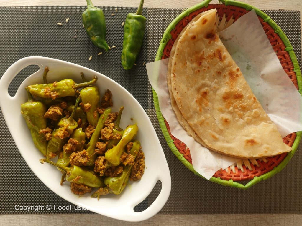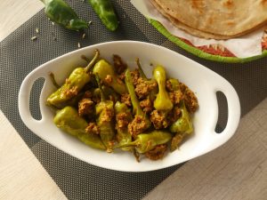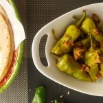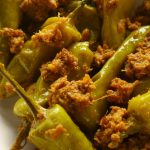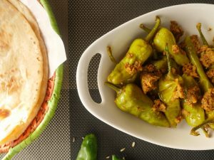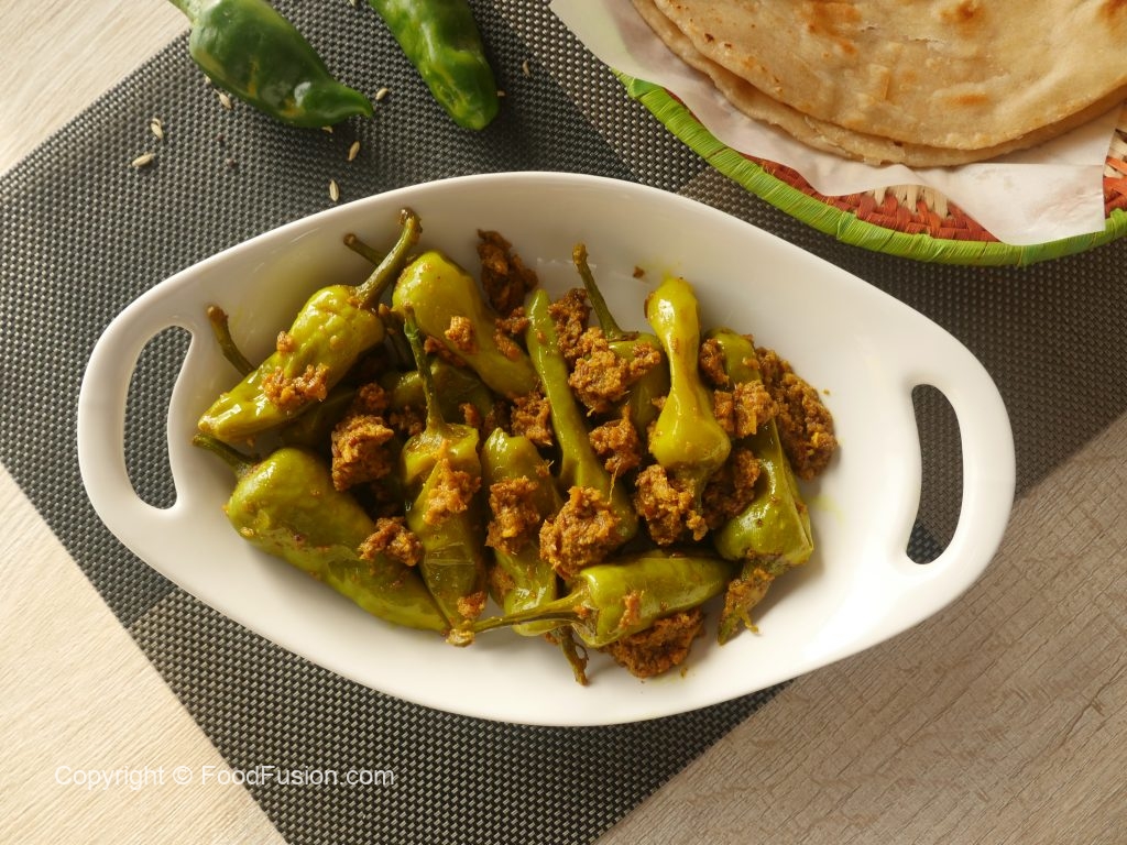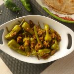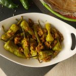 Slit green chilies with the help of the knife and stuffed with prepared spice mix.