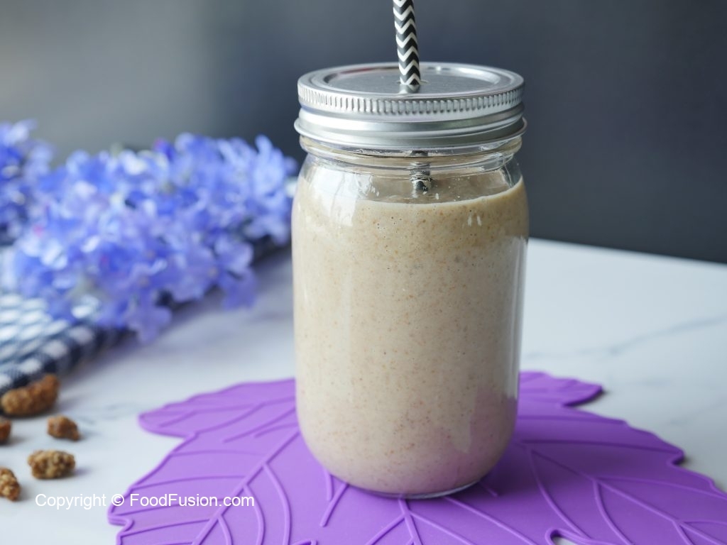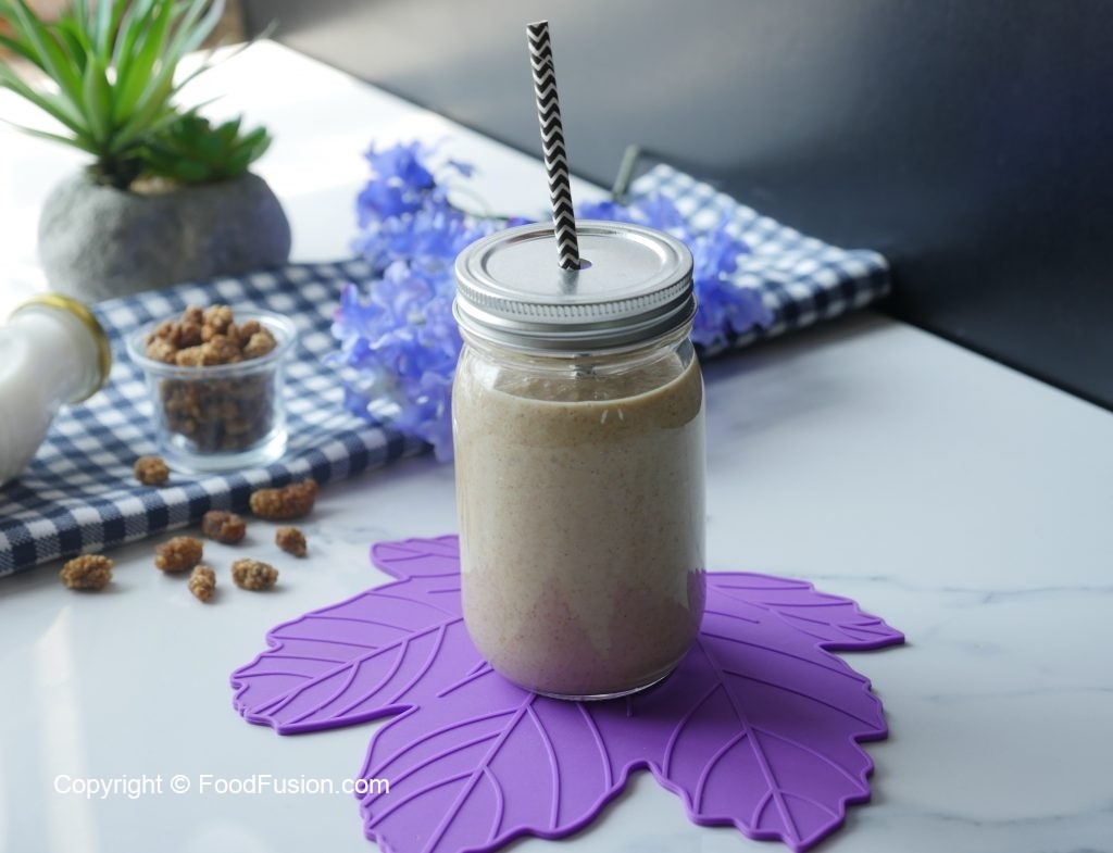 In blender jar,add soaked mulberries,milk and blend well & serve!