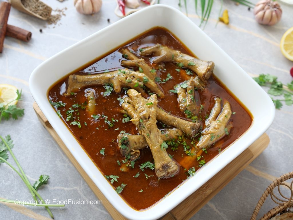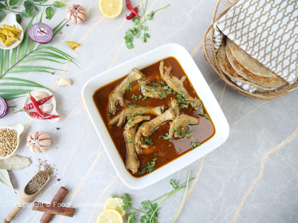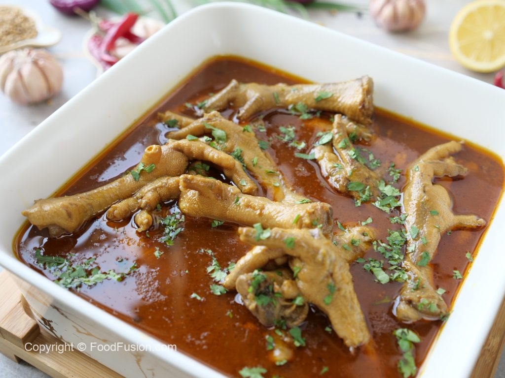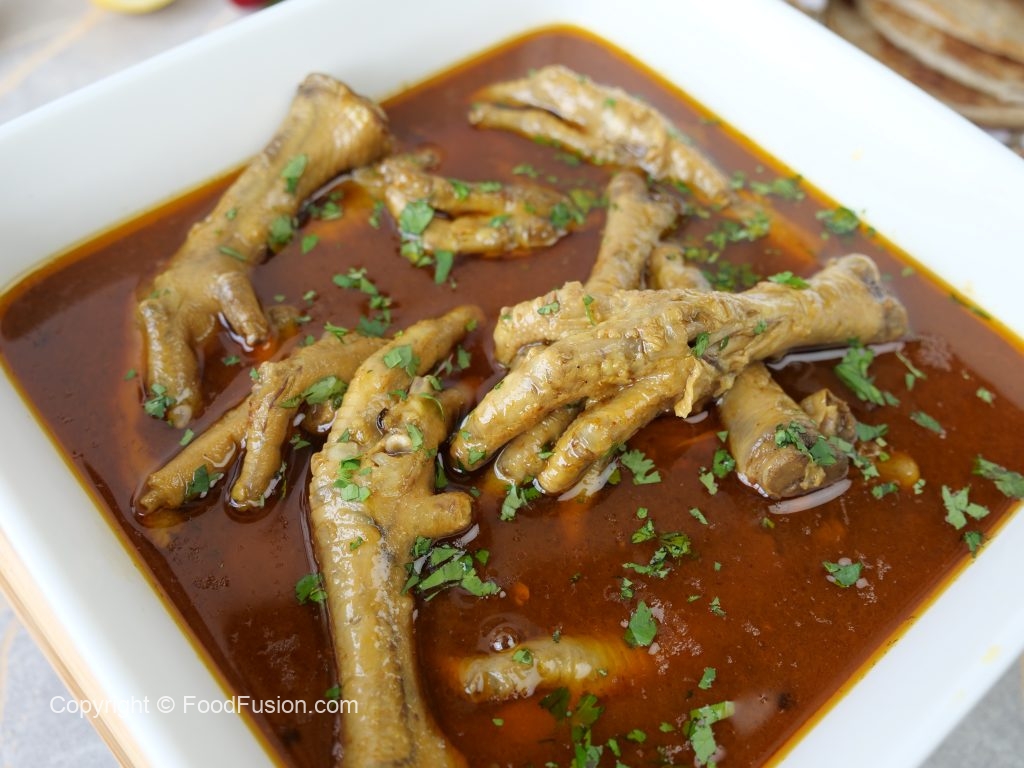 -Fire roast chicken feet on medium flame until its charred from all sides.