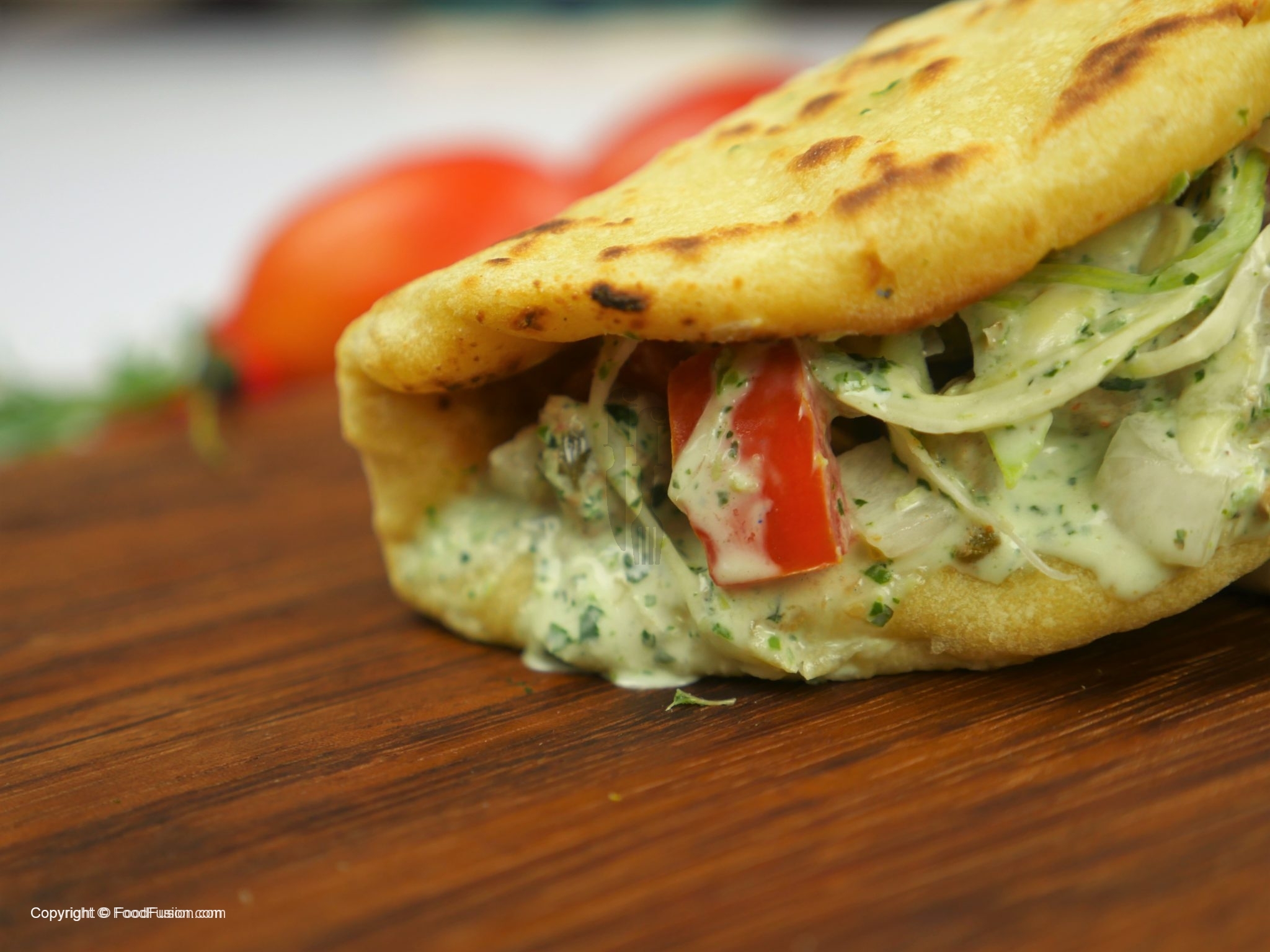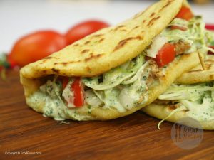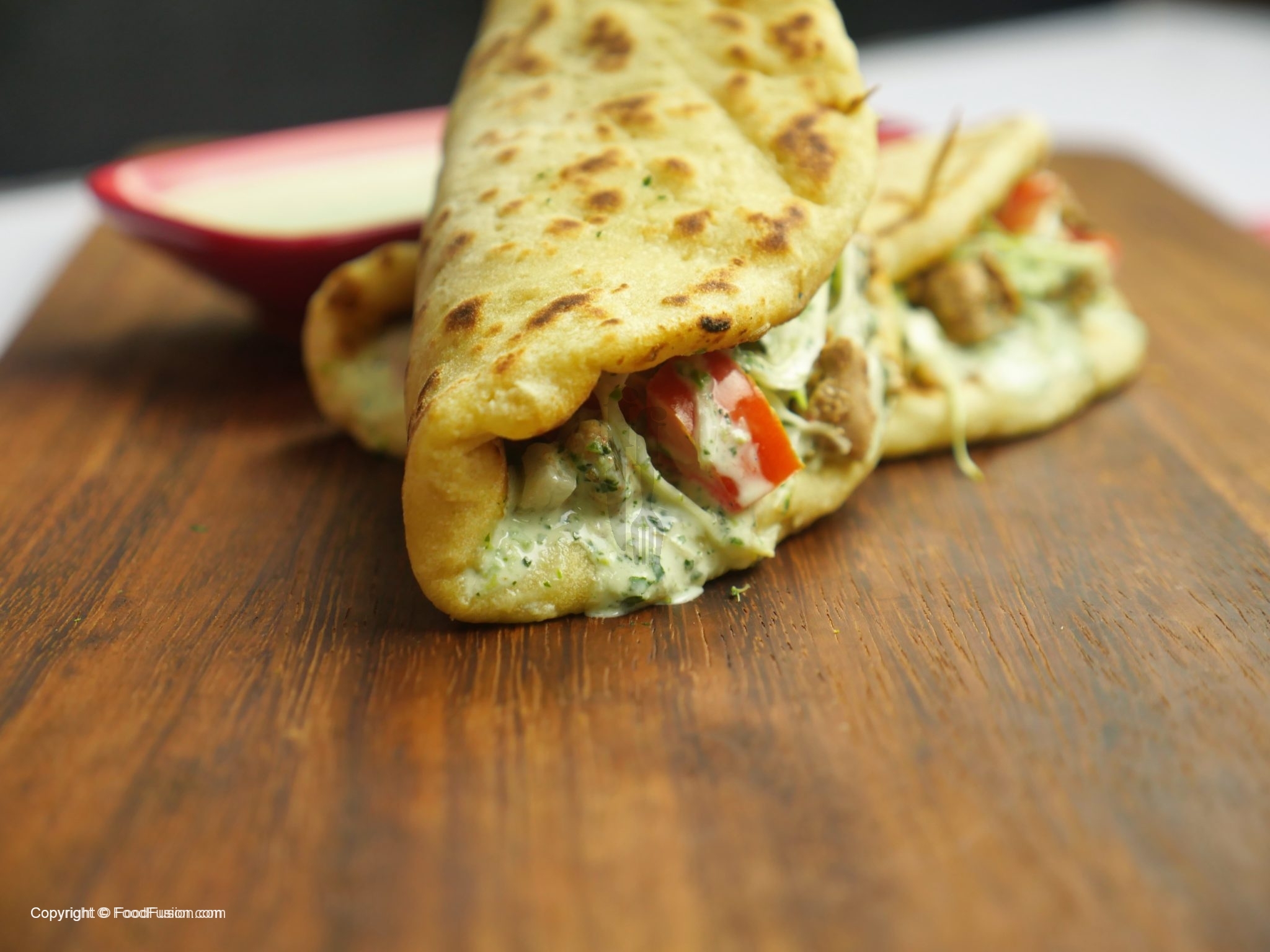 Cover one side of naan, pierce the tooth pick and serve with chutney.
