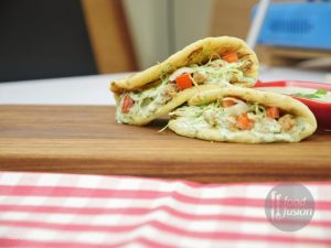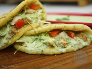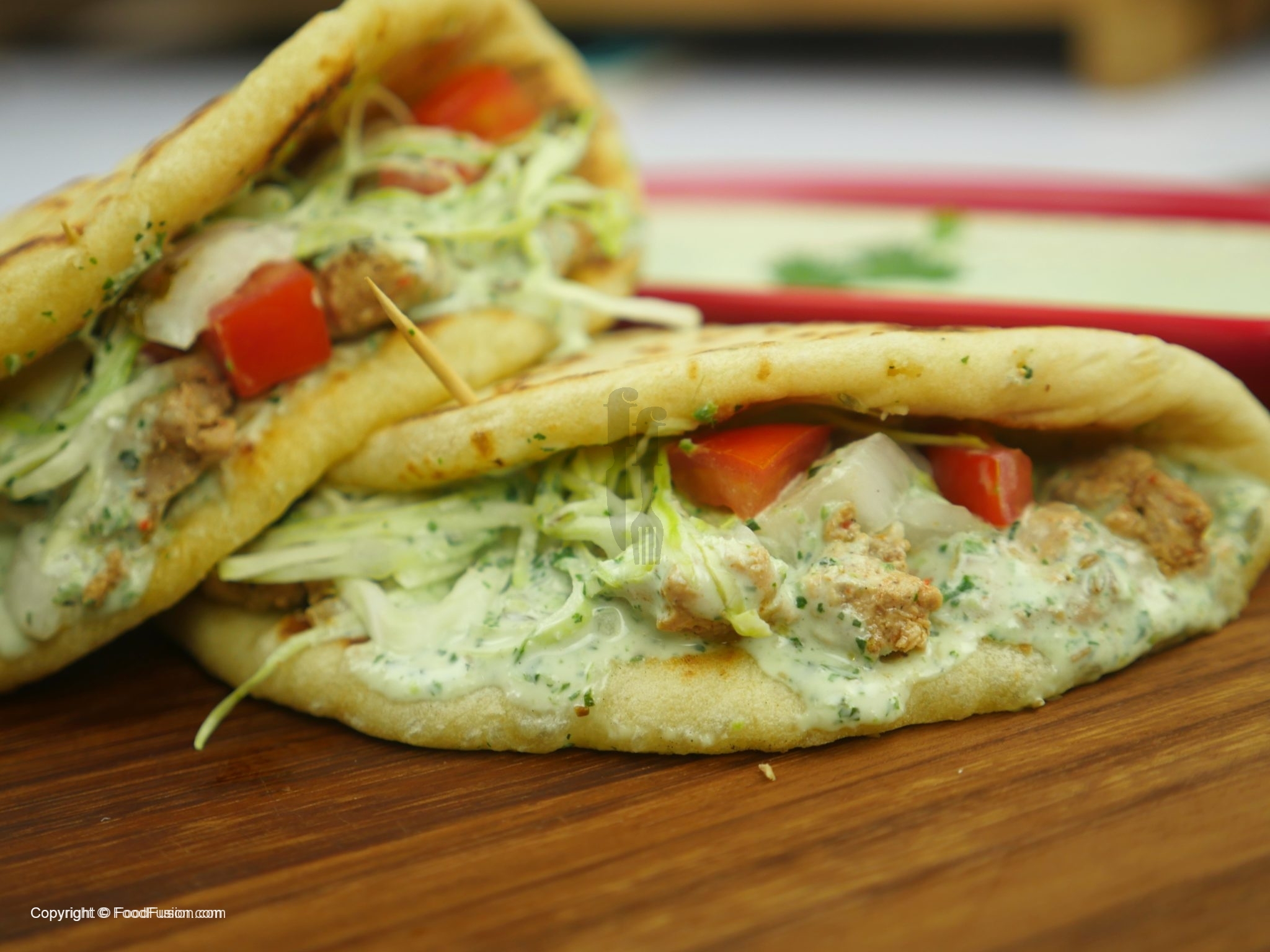 Take naam,add chicken,onion,tomato,cabbage and drizzle chutney.