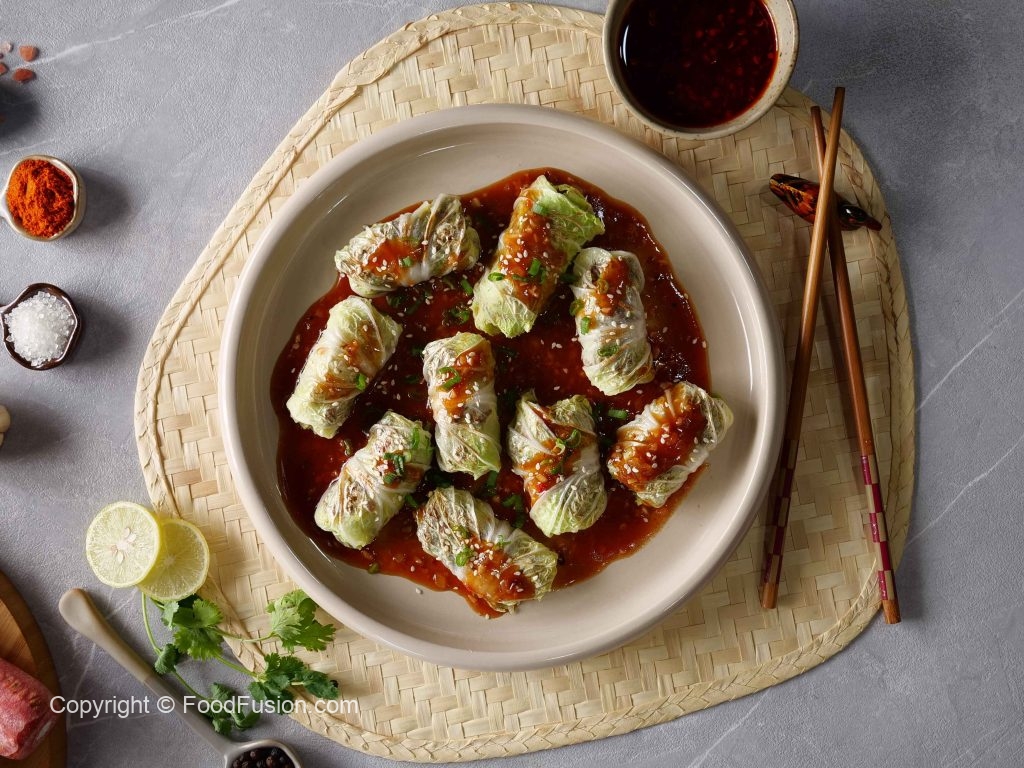 -On griddle,add cooking oil,place napa cabbage rolls & fry on medium flame from both sides until golden.