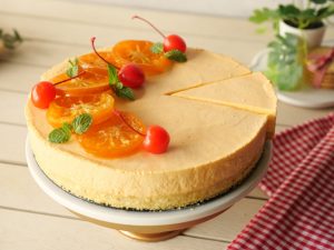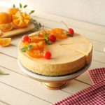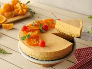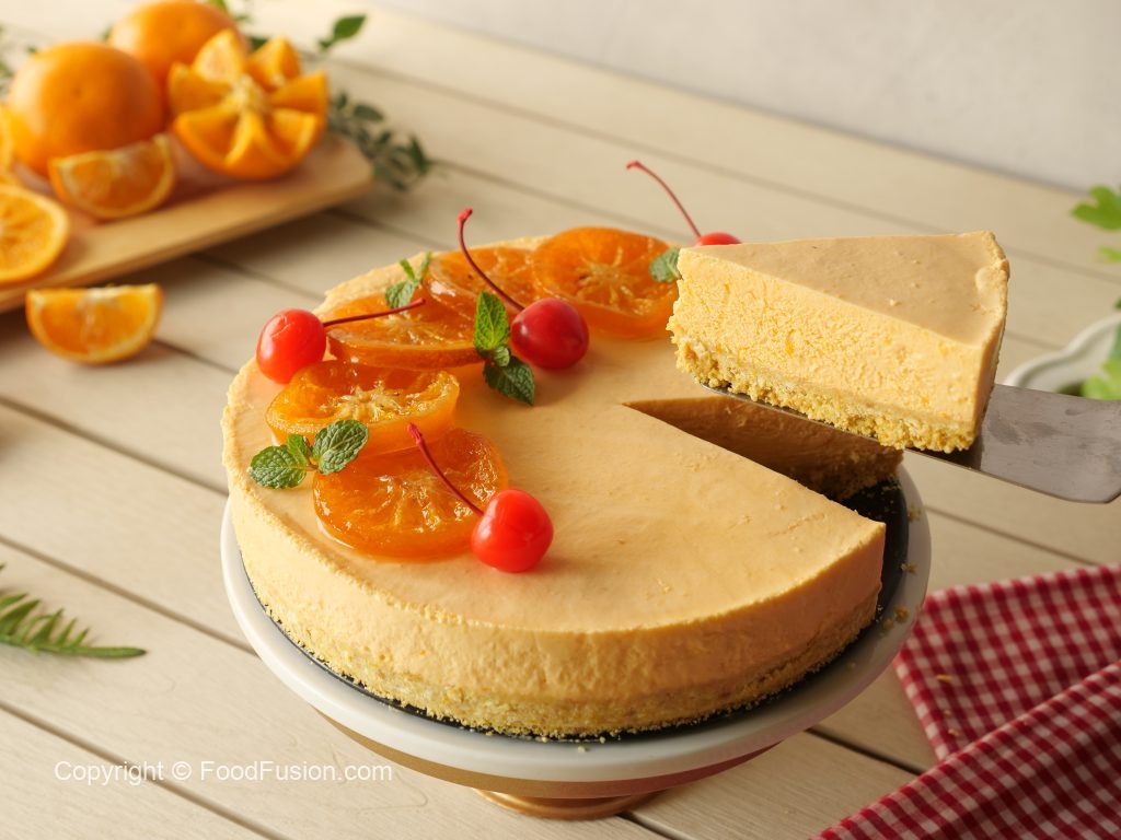 -Cheese cake ko carefully springform pan se nikal lein,candied orange slices,cherries aur podina sa garnish ker ke serve karein!