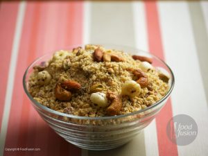 In food chopper,add all fried nuts and coarsely chop fried nuts,set aside.