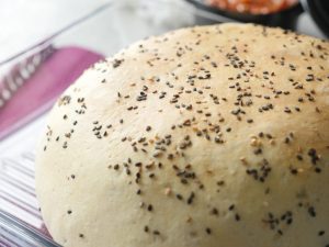 Apply milk on dough with the help of the brush and sprinkle black sesame seeds.