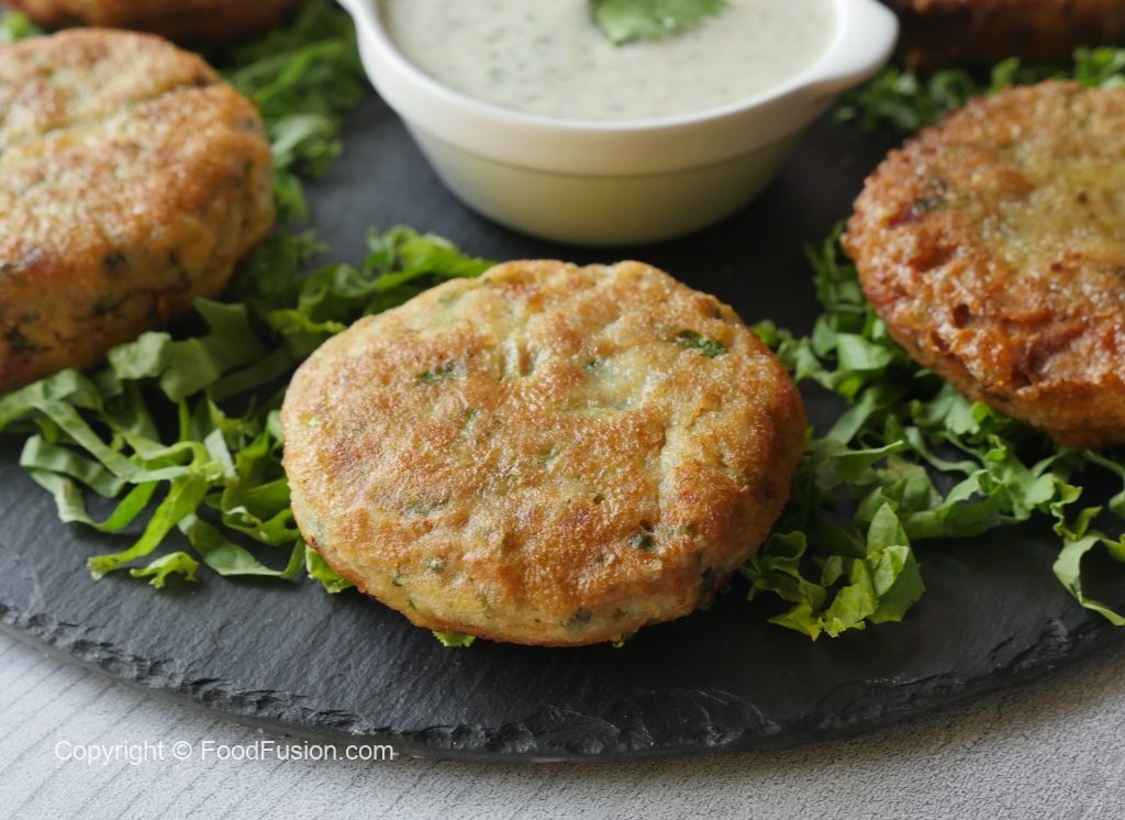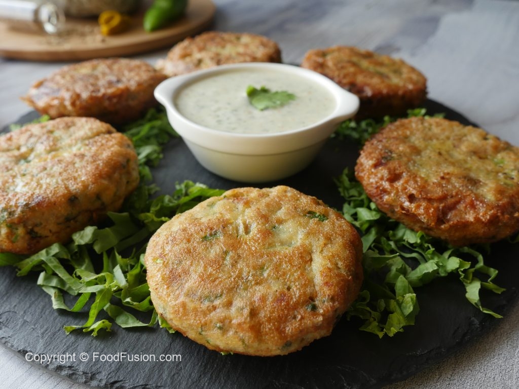 Grease hands with oil,take a mixture and make kababs of equal sizes (makes 12-13) and refrigerate for 30 minutes.