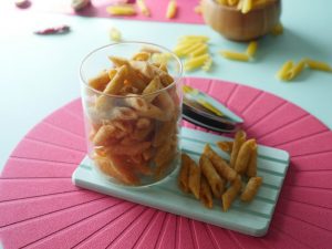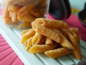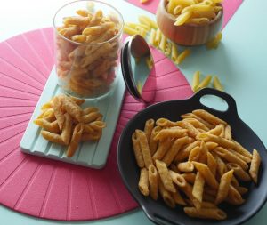 In a bowl add fried pasta, spice mix seasoning, cover & toss well.