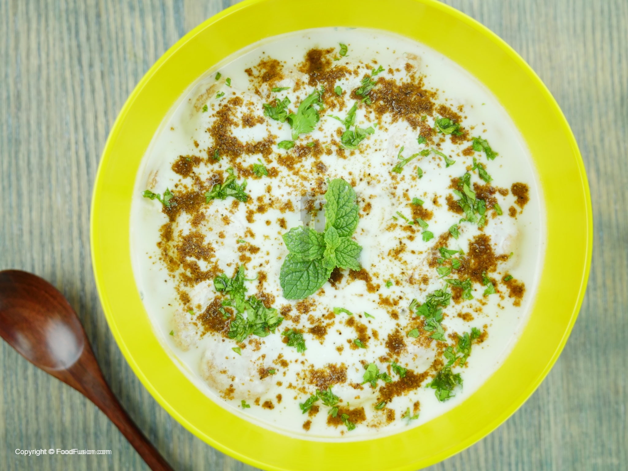 Take soaked bhalay in hand and press to remove excess water and add them in yogurt.