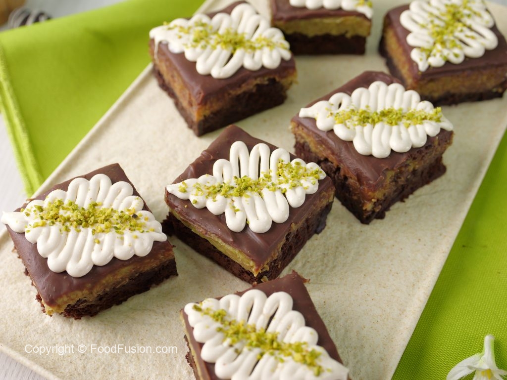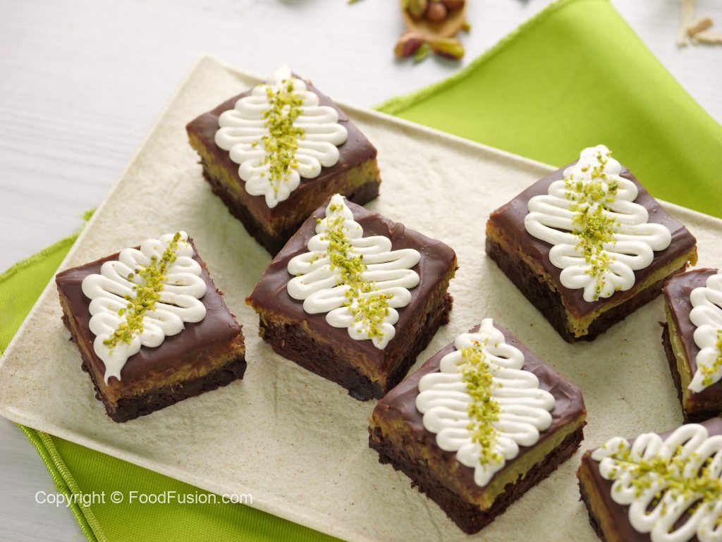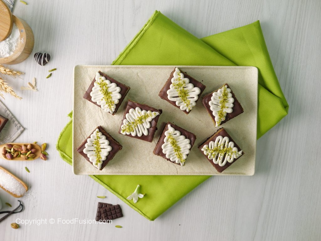 -Pistachio ganache ko brownie ka upper dal ker pheela lein.