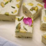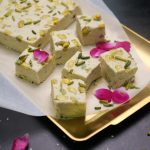 -Grease mold with cooking oil (lined with cling film),add pistachios,sesame seeds mixture,spread evenly & add pistachios in between & let it set in refrigerator for 2-3 hours.