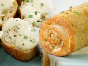 -Cut pita bun from center,add honey mustard sauce,iceberg lettuce,crispy chicken,chilli garlic sauce, cover with top bun with honey mustard sauce (makes 12).
