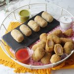 -Croquettes per non-stick spray karein aur 180C per 10-12 minutes kliya air fry ker lein (flip in between once after 5-6 minutes).