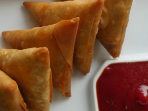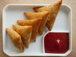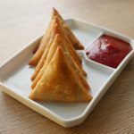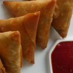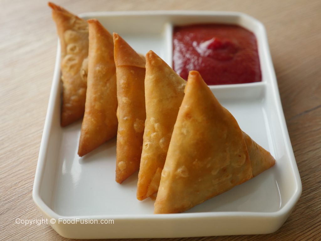 Take samosa patti/manda patti and make pocket,add filling in the center and roll into the shape of samosa and seal corners with all-purpose flour & water paste.