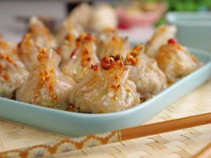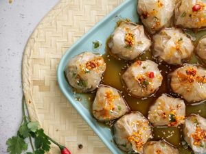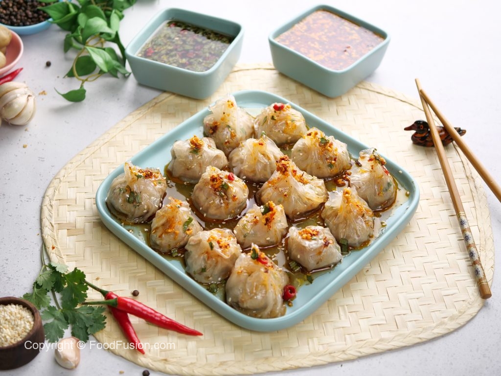 -Drizzle dipping sauce,garlic chilli oil,sesame seeds & serve!