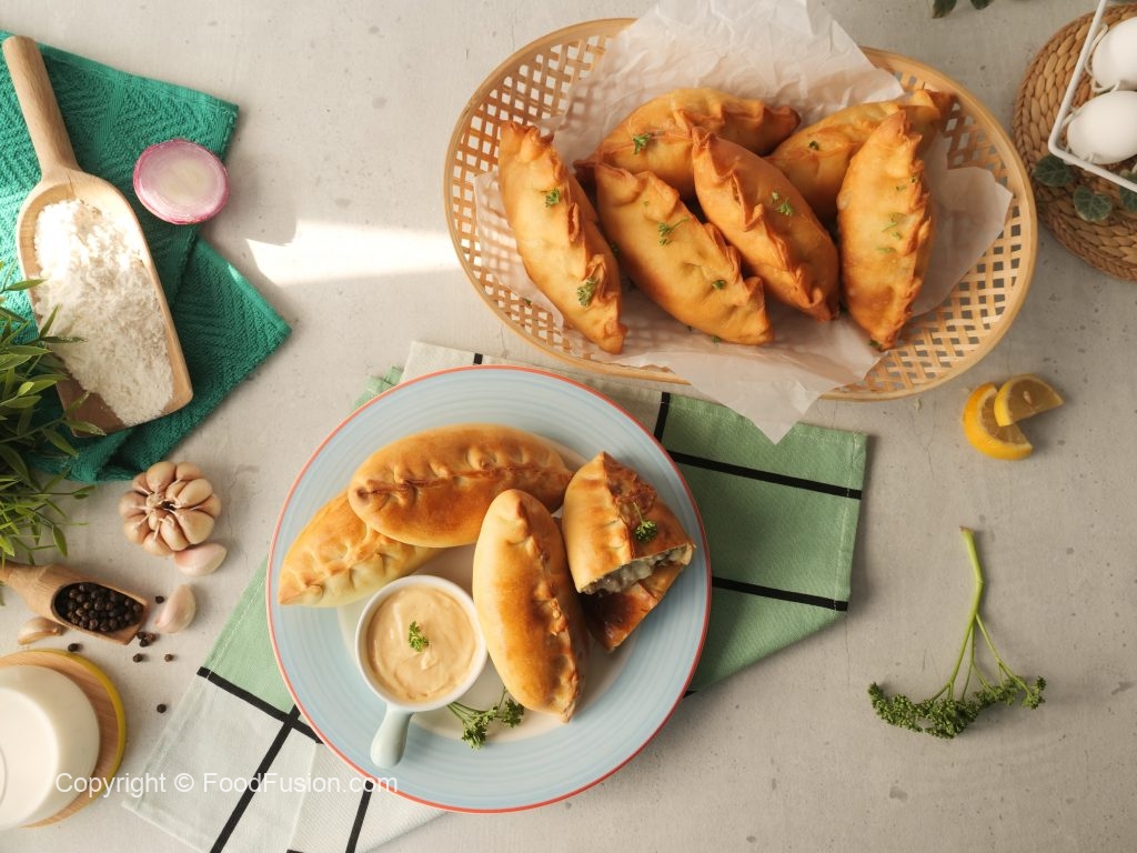 A fantastic Russian Pirozkhi with meat & Cheese filling. Pirozkhi is like a filled bread which is pinch sealed. This recipe has methods to bake or deep fry. #HappyCookingToYou #FoodFusion #PakolaFullCreamMilk