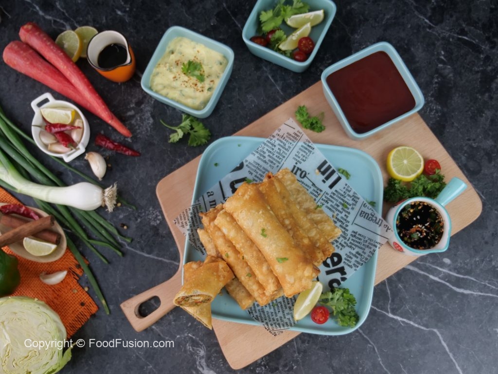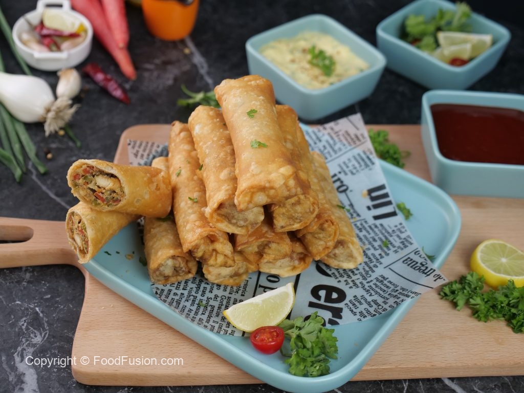 A great new fusion to bring shawarma and spring rolls in one fantastic video. Shawarma Spring Rolls – Make and freeze recipe. Methods for air frying and deep frying also given. #FoodFusion #HappyCookingToYou #FoodFusion