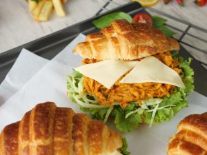 -On top side of croissant,spread butter & flip to make a sandwich (makes 5-6) & serve!