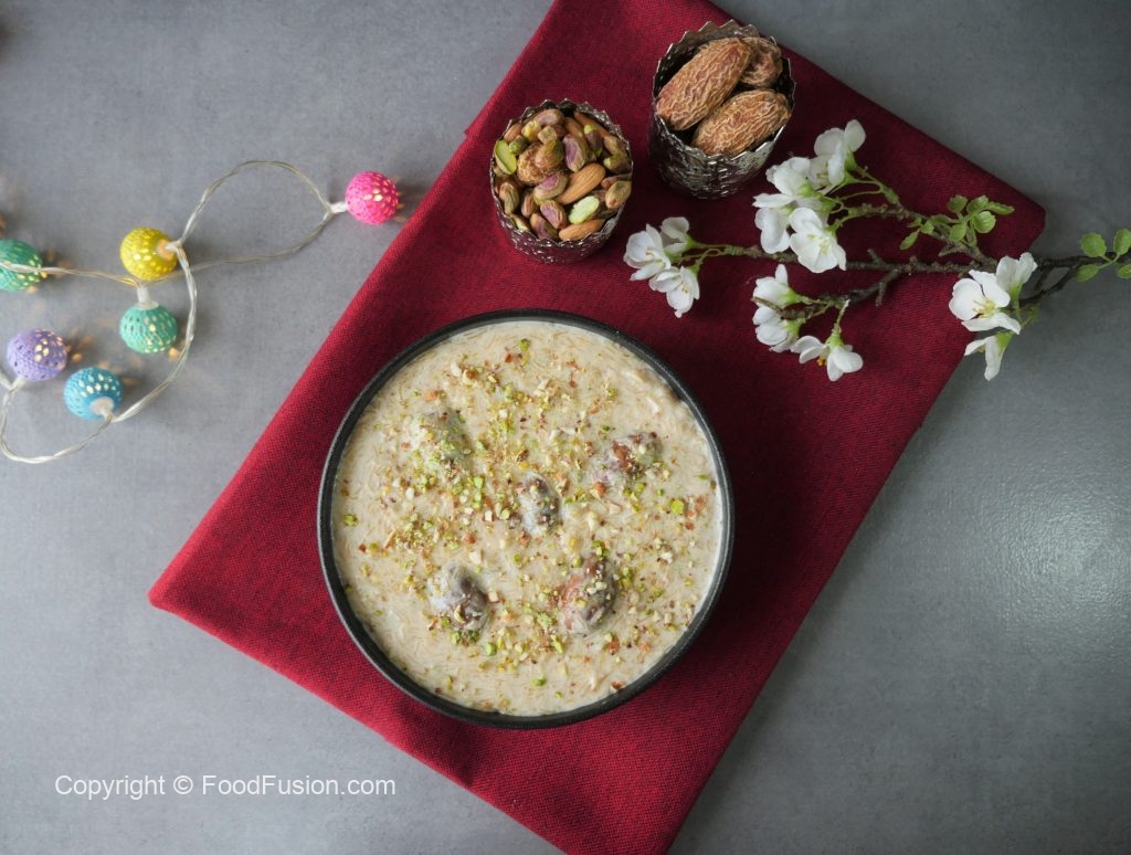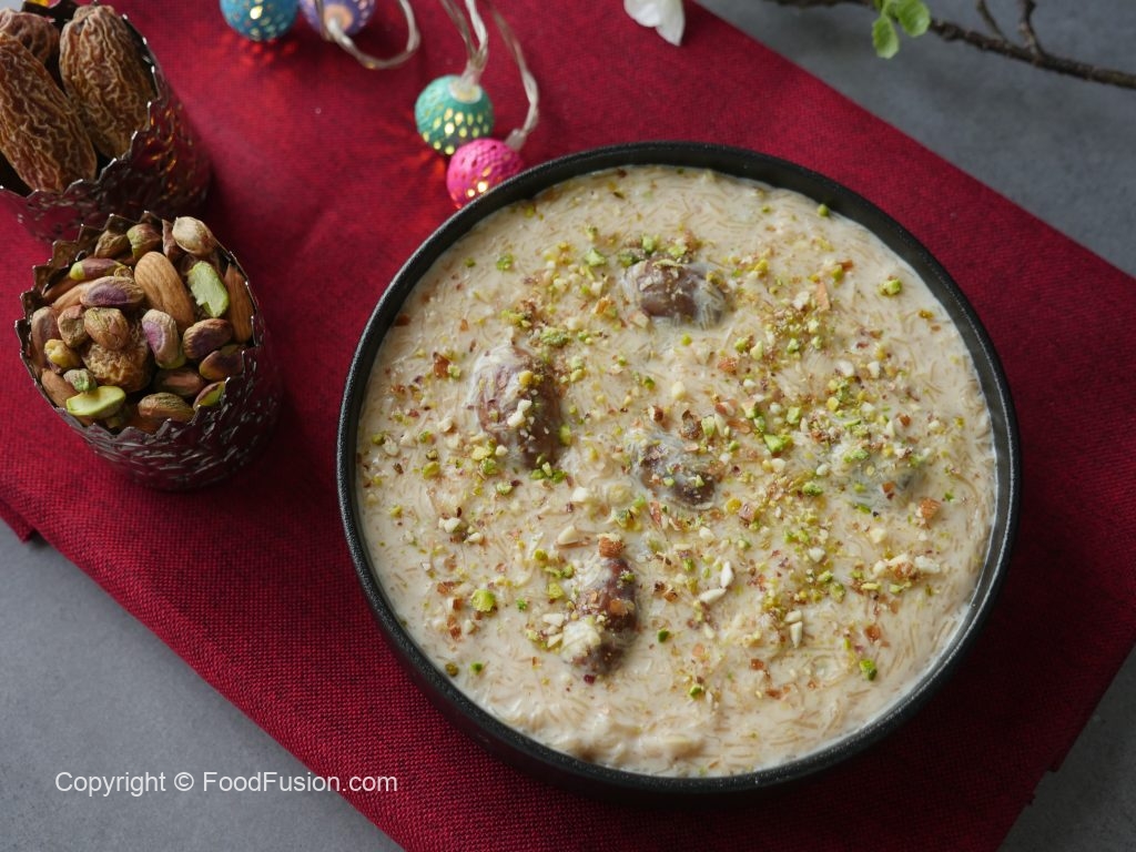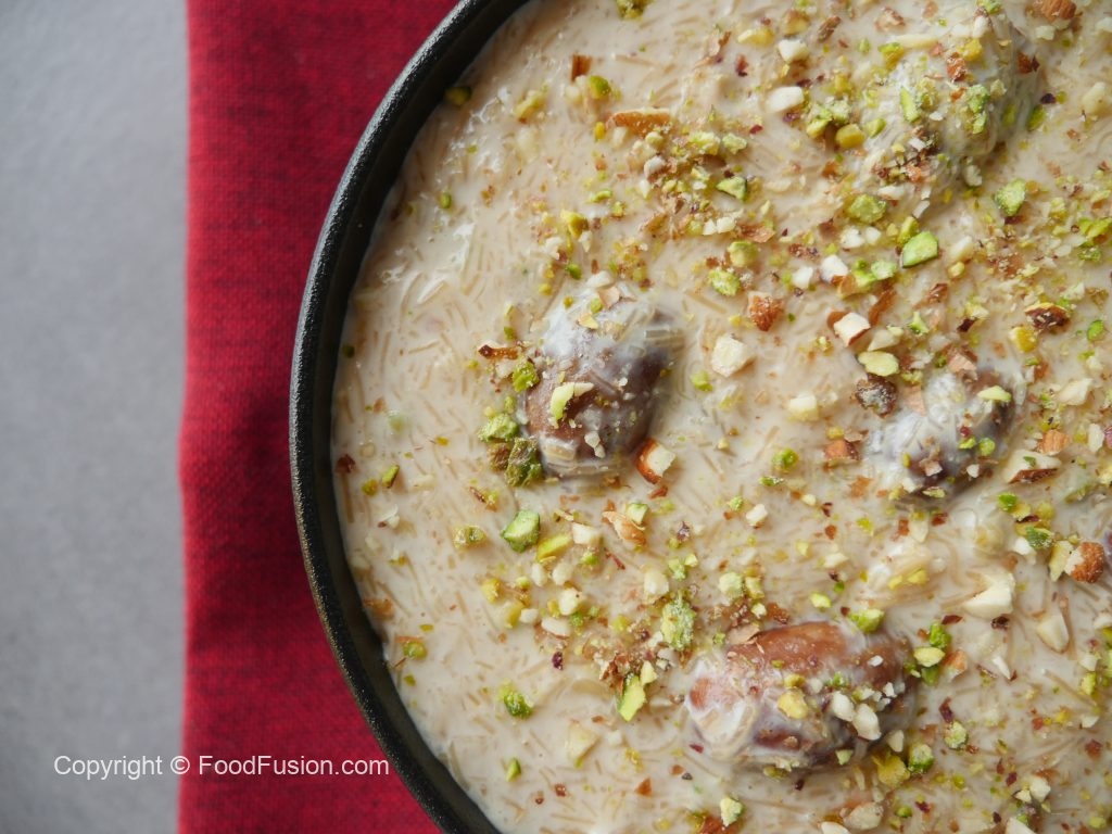 Ab roasted sawaiyan dal ker ache tarhan mix karein aur halki ancch per doodh adha reh janay tak paka lein (approx. 15-20 minutes) aur bech bech mein chamcha chalatay rahein.
