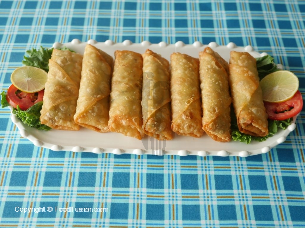 Take roll sheets,add filling and fold both sides,apply all-purpose flour paste and fold it.