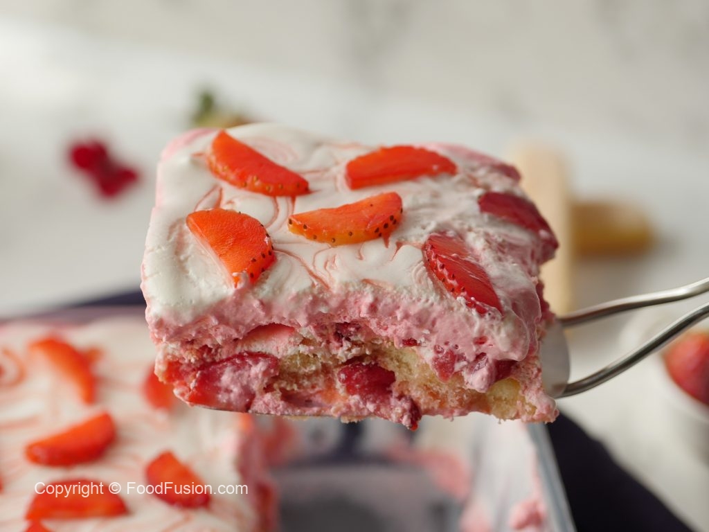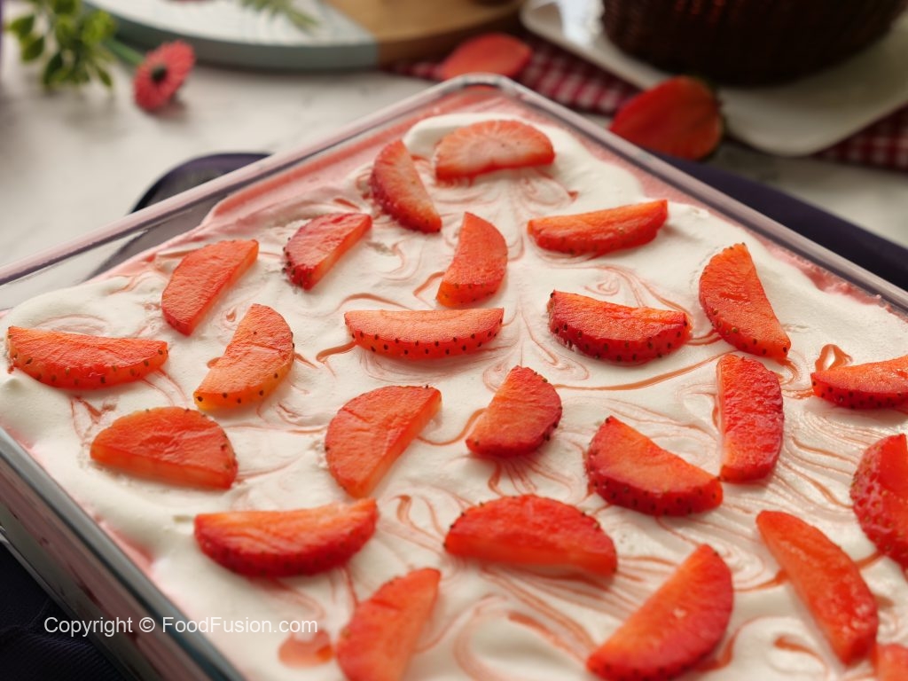 An amazing dessert with strawberry. This strawberry Icebox Cake Dessert will surely become everyone’s favourite this strawberry season. #HappyCookingToYou #OlpersCream #FoodFusion