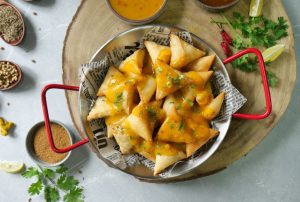 -Mini samosa mein tayyar chutney aur hara dhania dal ker serve karein!