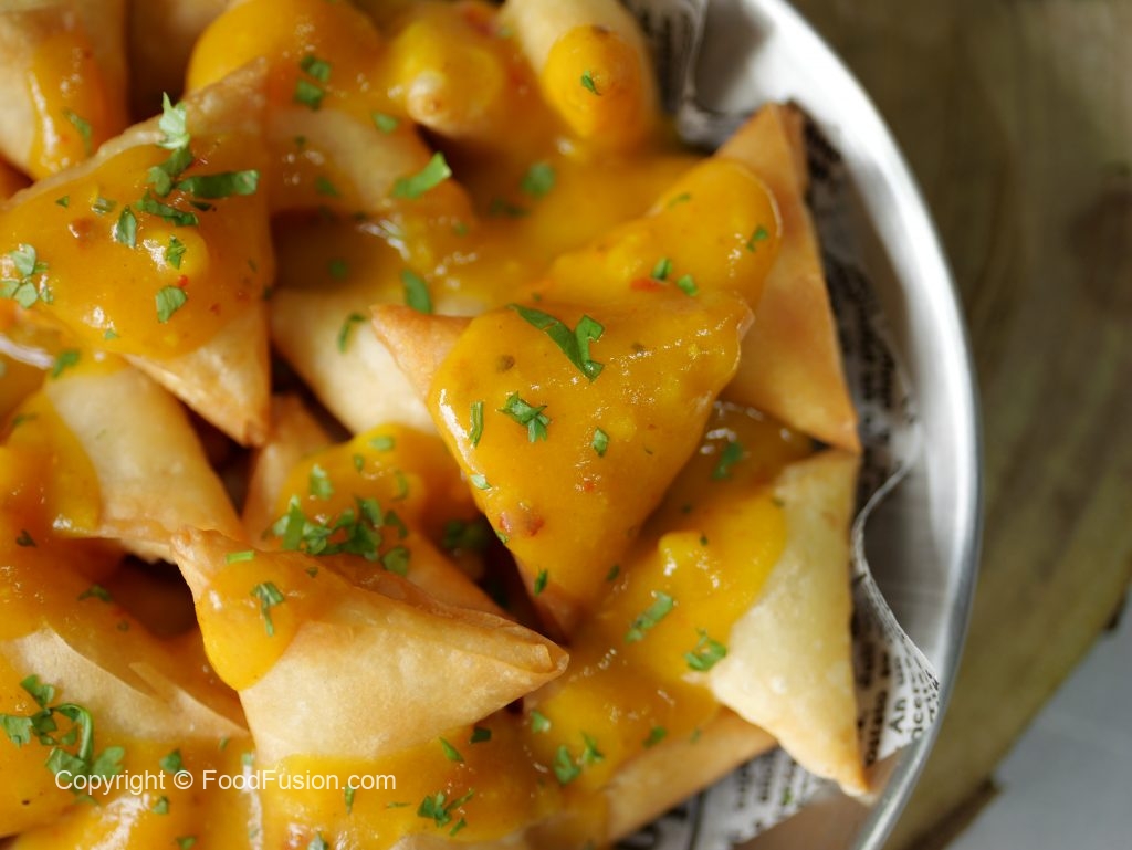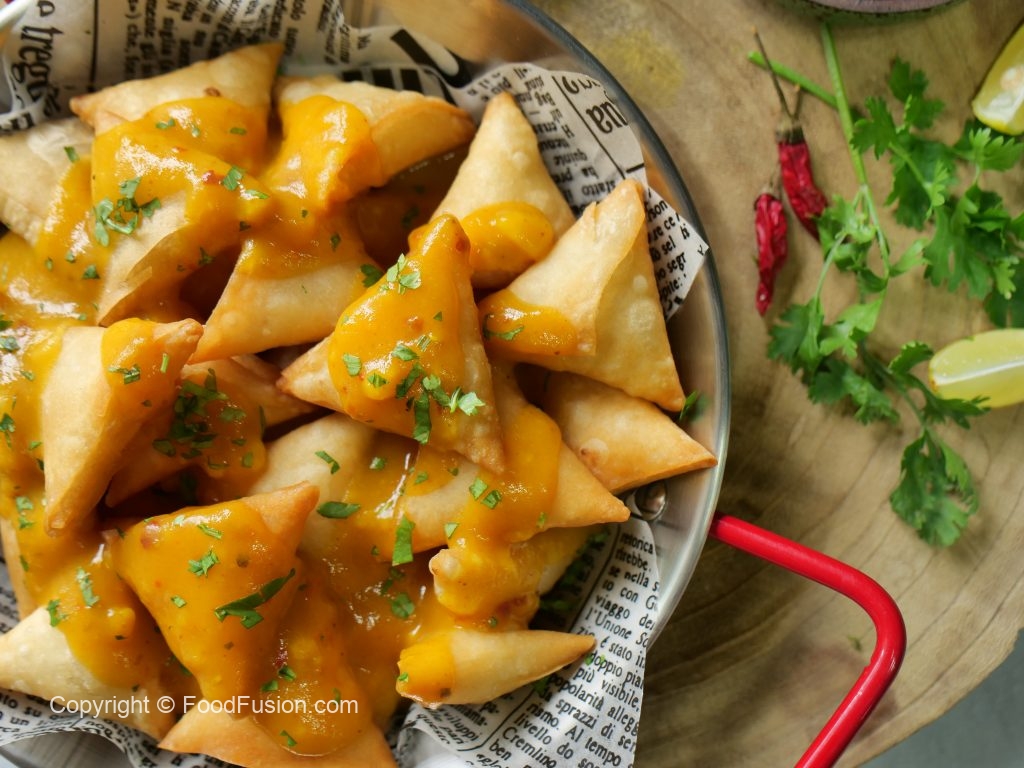-On mini samosa,add prepared chutney,fresh coriander & serve!