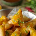 -Add reserved potato mixture,red chilli crushed & orange food color.