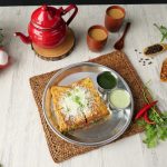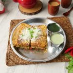 -Add cheddar cheese slice,grated mozzarella cheese,chaat masala then cover with top bread slice to make a sandwich.