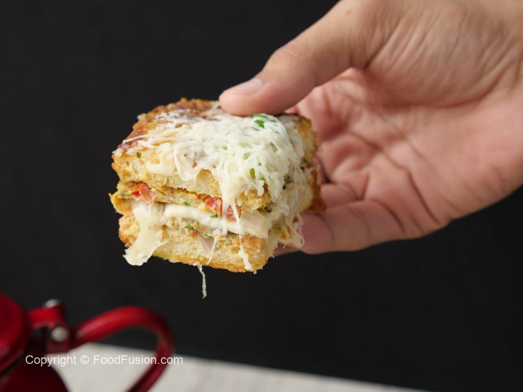 -Add bread slices,turn the sides & flip.