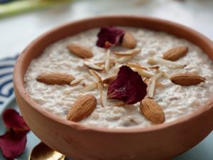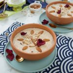 Garnish with almonds,dried rose petals & serve chilled.