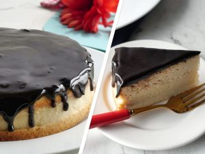 -Take out cake from oven,cool it cool & cut from the centre.