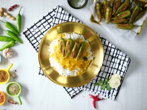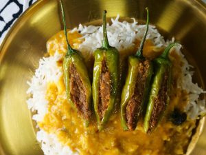 -Hari mirch ko beech se cut ker lein aur tayar filling bhar dein.
