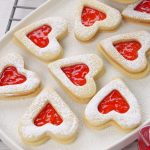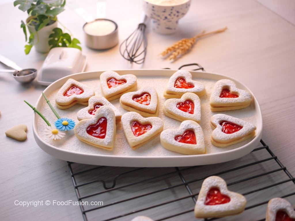 -On whole heart cookies,add fruit jam in the center & top with cutout heart cookies (makes 25-26).
